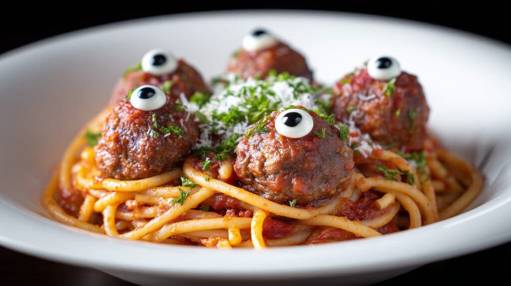 This week enjoy some eyeball meatballs. This fun Halloween meal is a perfect meal that looks right back at you!